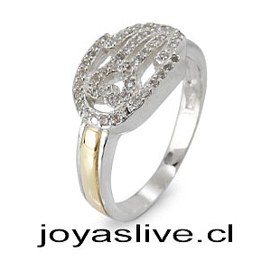 Anillo de Plata chilena 950 con Oro 18Kl. Mano de Fátima con Cristal Swarovski (medida 14)