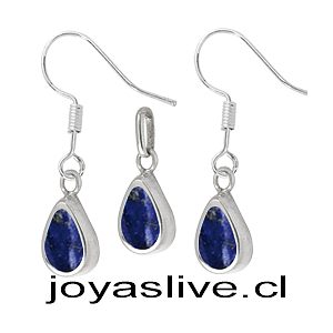 Conjunto plata chilena 950, Gotas Lapislazuli.