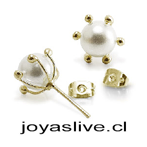 Aros de Oro 18 kl. Pistilos Grandes con Perlas de río 6 milímetros (Peso aproximado 2,2 gramos)