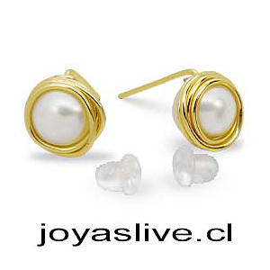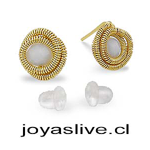 Aros Bisutería baño de Oro Resortes con Mostacilla Blanca