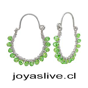 Aros Bisutería baño de Plata con Mostacillas verdes