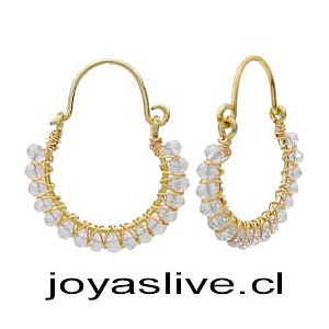 Aros Bisutería baño de Oro con Mostacillas transparentes