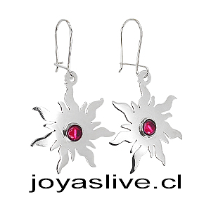 Aros de Plata chilena 950 Sol con Punto de Luz Rojo