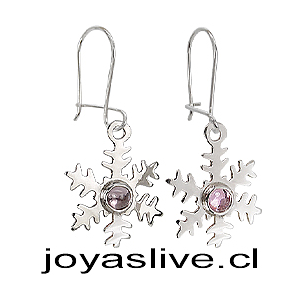 Aros de Plata chilena 950 Copos de nieve con Punto de Luz Rosado