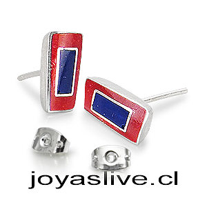 Aros de Plata chilena 950 Jaspe con Lapislázuli Rectángulo