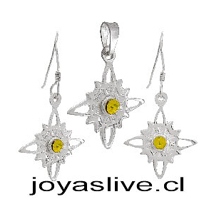 conjunto plata italiana 925 con cristales en destellos blancos