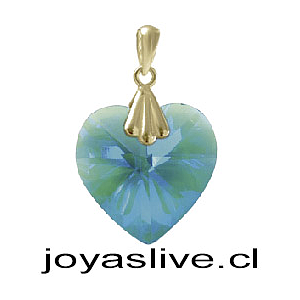 Dije de Oro 18kl. Swarovski Corazón Tornasol Turquesa (1,2 gramos gancho colgante)