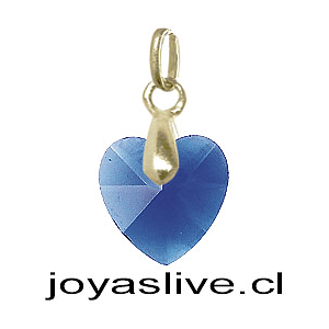 Dije de Oro 18kl. con Cristal Fino Corazón Azul claro (1,2 gramo gancho colgante)