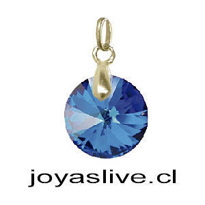 Dije de Oro 18kl. con Swarovski Azul Redondo (1,2 gramos gancho colgante)
