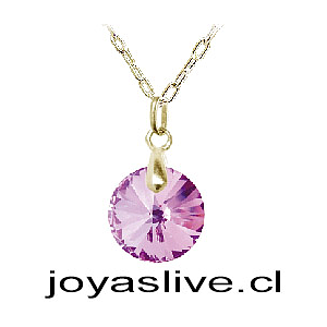Colgante de Oro 18kl. con Swarovski Morado Redondo ( Peso aproximando, 4 gramos entre cadena y colgante )