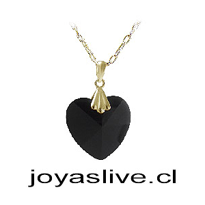 Colgante de Oro 18kl. con Cristal Corazón Negro ( Peso aproximando, 4 gramos entre cadena y colgante )