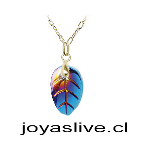 Colgante de Oro 18kl. con Cristal Fino Hoja Azul Tornasol ( Peso aproximando, 4 gramos entre cadena y colgante )