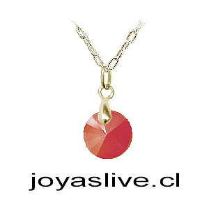 Colgante de Oro 18kl. con Swarovski Rojo Redondo ( Peso aproximando, 4 gramos entre cadena y colgante )