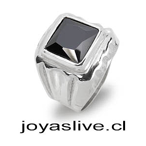 Anillo de plata chilena 950 Sello, Cristal Negro (Medidas de la 10 a la 28) (an77)