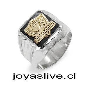 Anillo de plata chilena 950 Sello Colo-Colo Oro Goldfield, fondos negro (medidas de la 10 a 28) (an78)