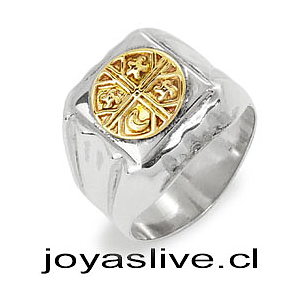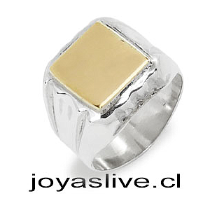 Anillo de Plata chilena 950 Sello mitad Oro Goldfield (medidas del 10 a 28)(an141)