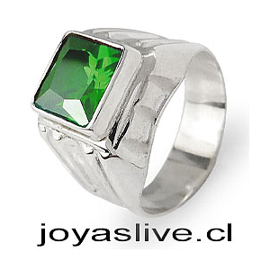 Anillo de Plata chilena 950 Sello Cristal fino Verde ( Puedes pedir piedra verde o negra )(an143)