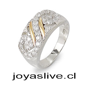 Anillo de plata con Oro 18Kl. y Cristal Swarovski (medida 12)
