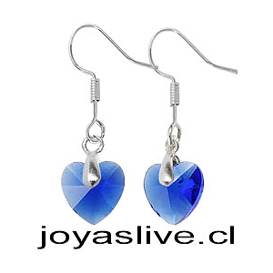 Aros de Plata chilena 950 con Cristal Fino Corazón Azul Claro