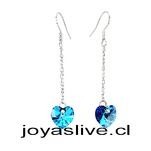 Aros de Plata Colgantes Cristal fino Corazón Azul