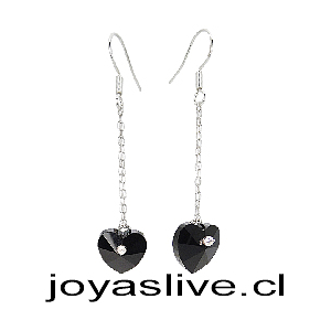 Aros de Plata Colgantes Cristal fino Corazón Negro