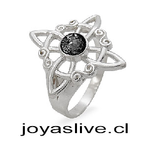 Anillo de Plata chilena 950 Nudo de Bruja Onix (medida 18)