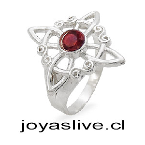 Anillo de Plata chilena 950 Nudo de Bruja Granate (medida 22)