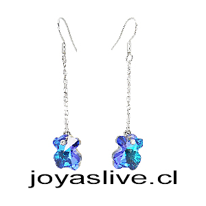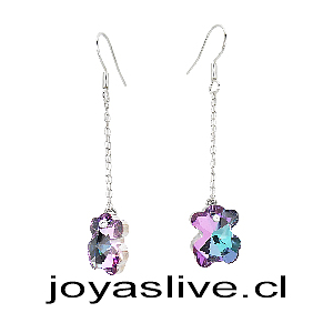 Aros de Plata Colgantes Cristal fino Oso Morado Azulado Tornasol