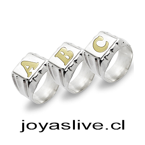 Anillo de plata chilena 950 Sello Letras de la A a la Z (medidas de la 10 a 28) (an86)