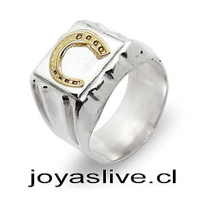 Anillo de Plata Chilena 950 Sello con herradura de Oro Goldfield (medidas de la 10 a 28) (an93)
