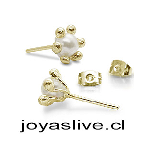 Aros de Oro 18 kl. Pistilos Pequeños con Perlas de río (Peso aproximado, 1,8 gramos)