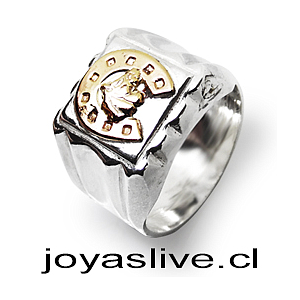 Anillo de plata chilena 950 sello con herradura de oro Goldfield (medidas de la 10 a 28) (an74)