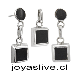 Conjunto plata chilena 950, Cuadrado Obsidiana