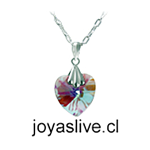 Colgante plata chilena 950, con cristal fino corazón tornasol
